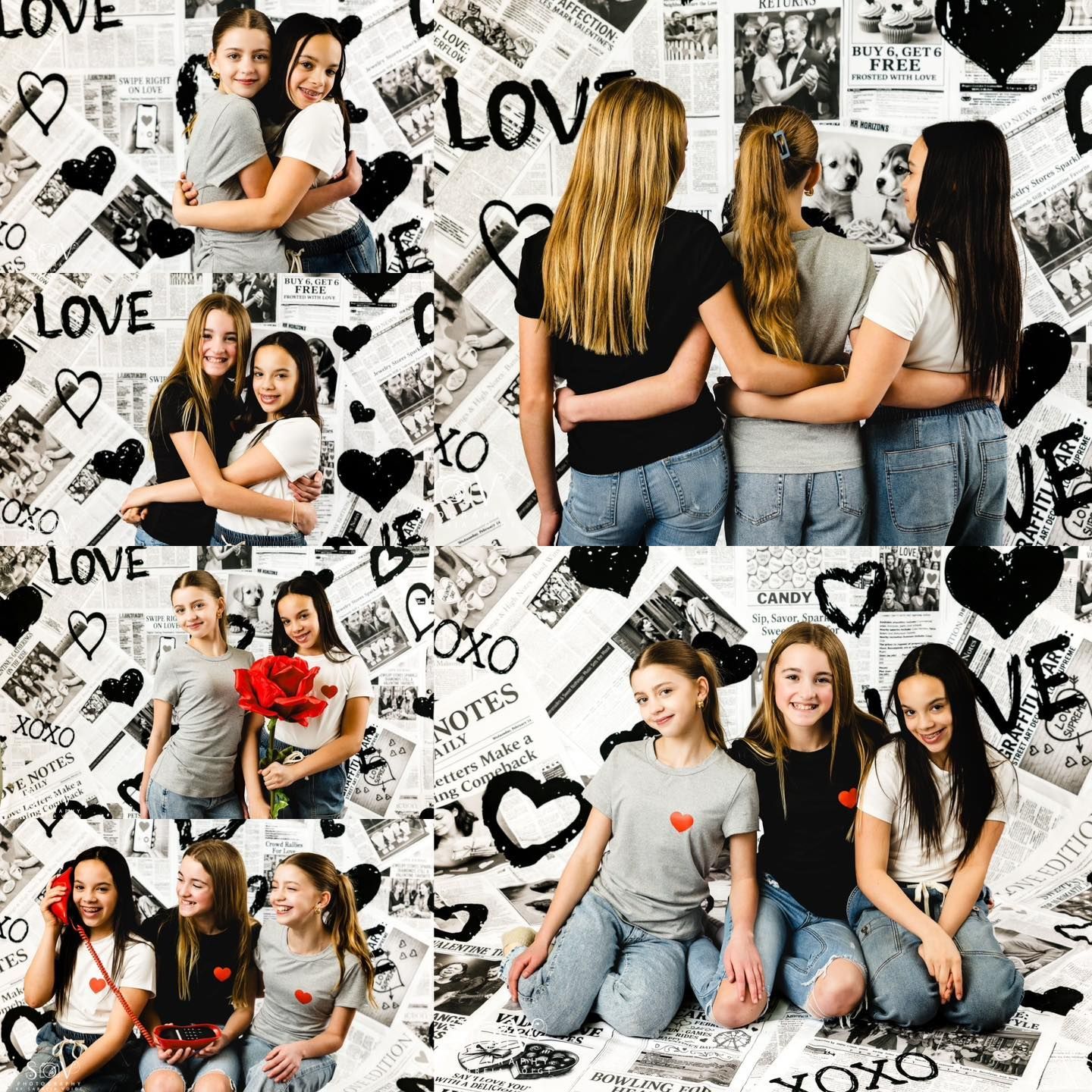 • Woman and child sitting, holding hands, in front of graffiti, wearing jacket, black shirt/pants, and plaid shirt/pants.