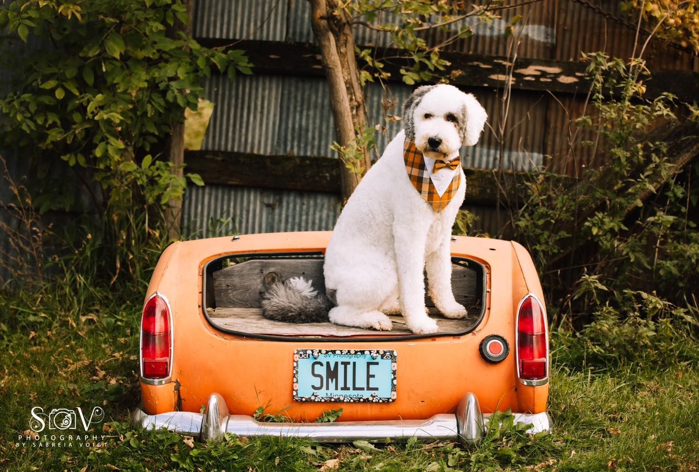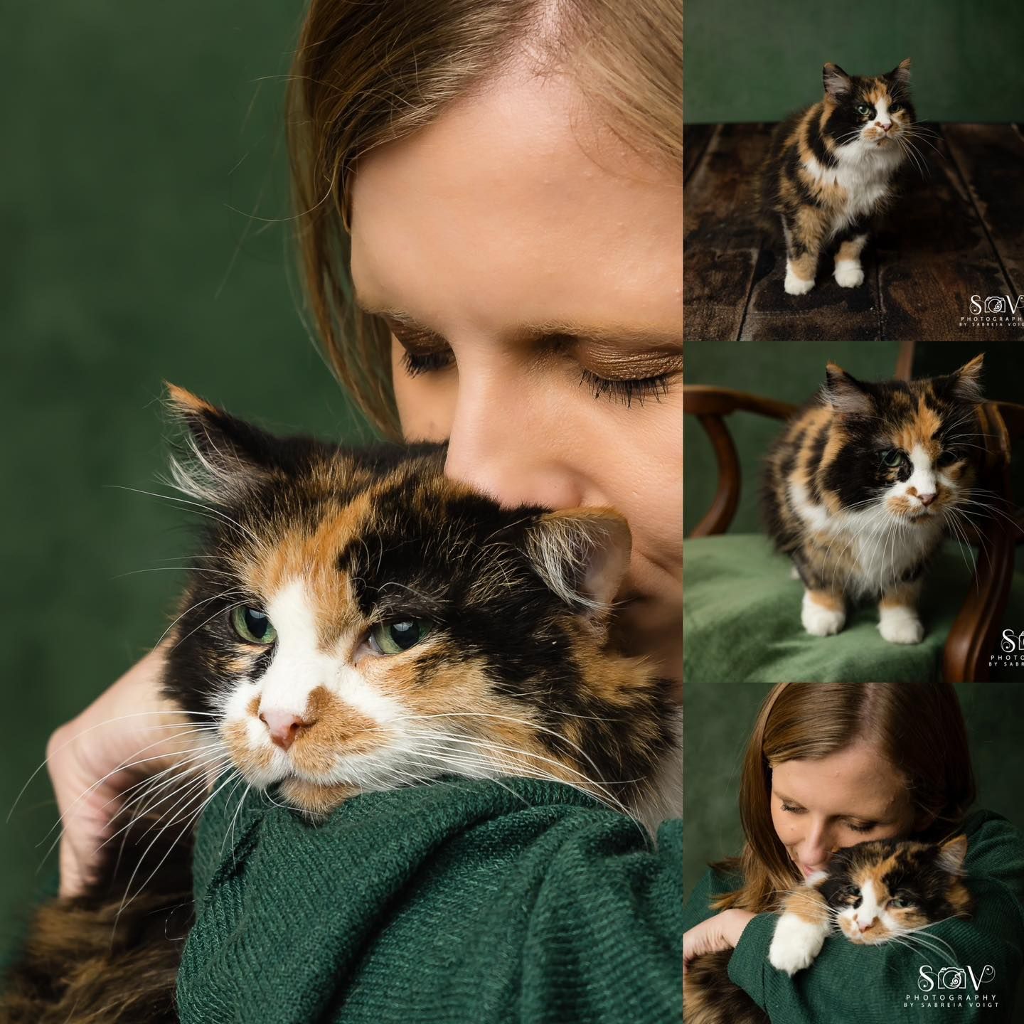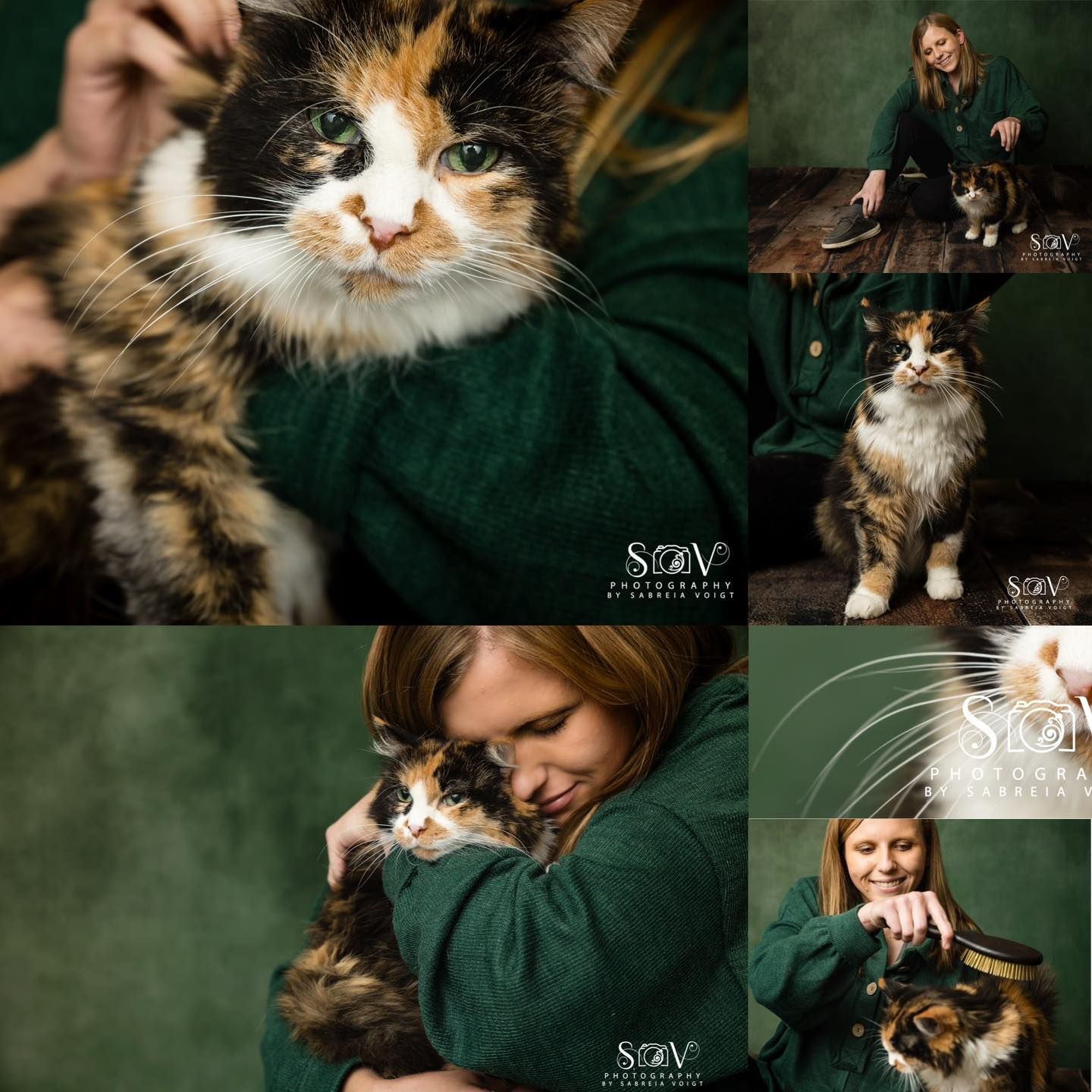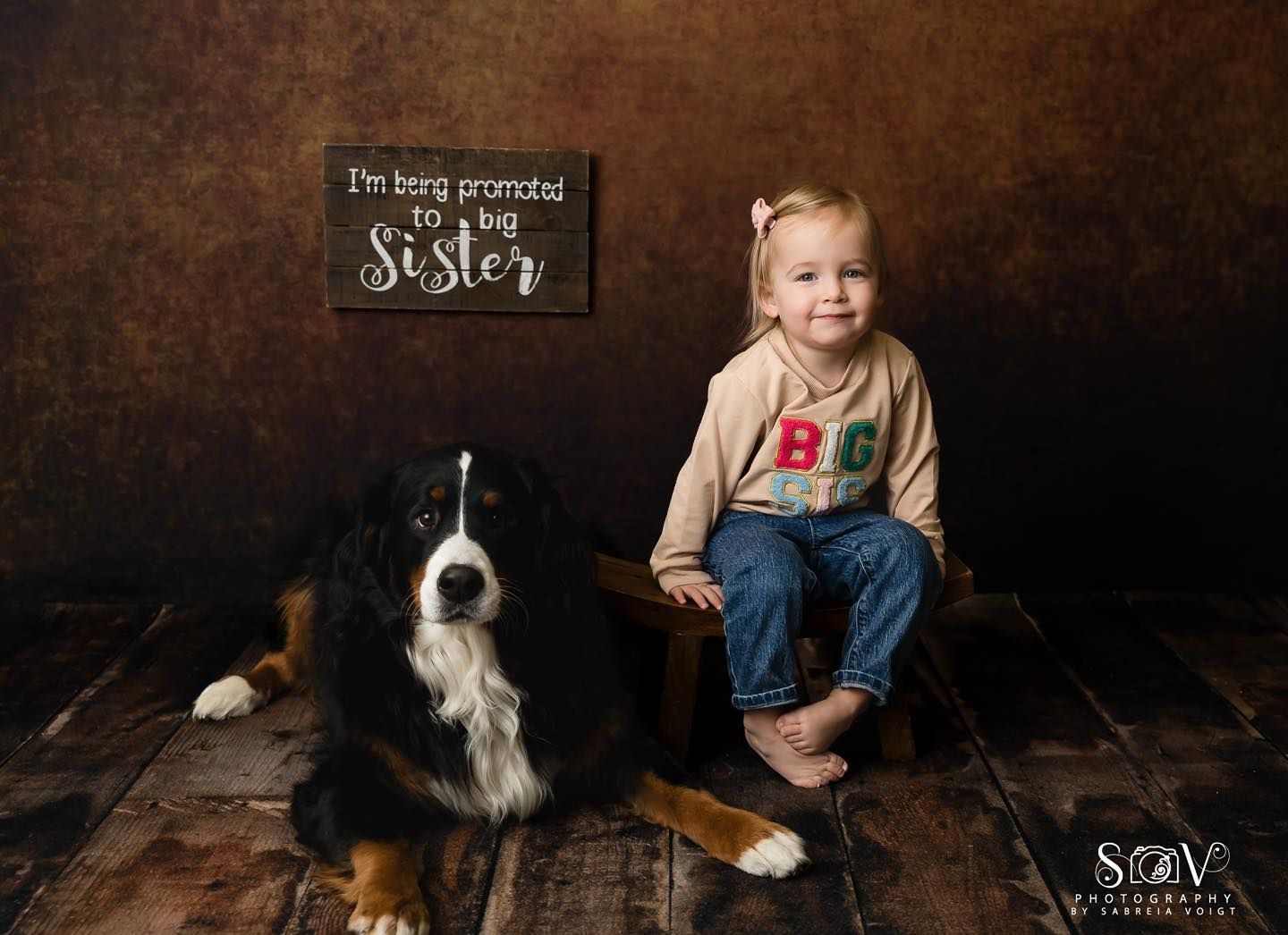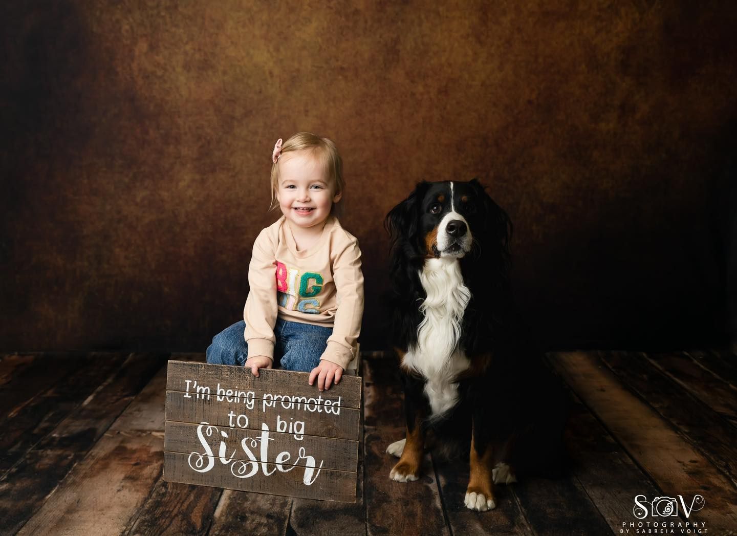 Woman holding camera, smiling, above gray sign "SOV Photography by Sabria Voigt."